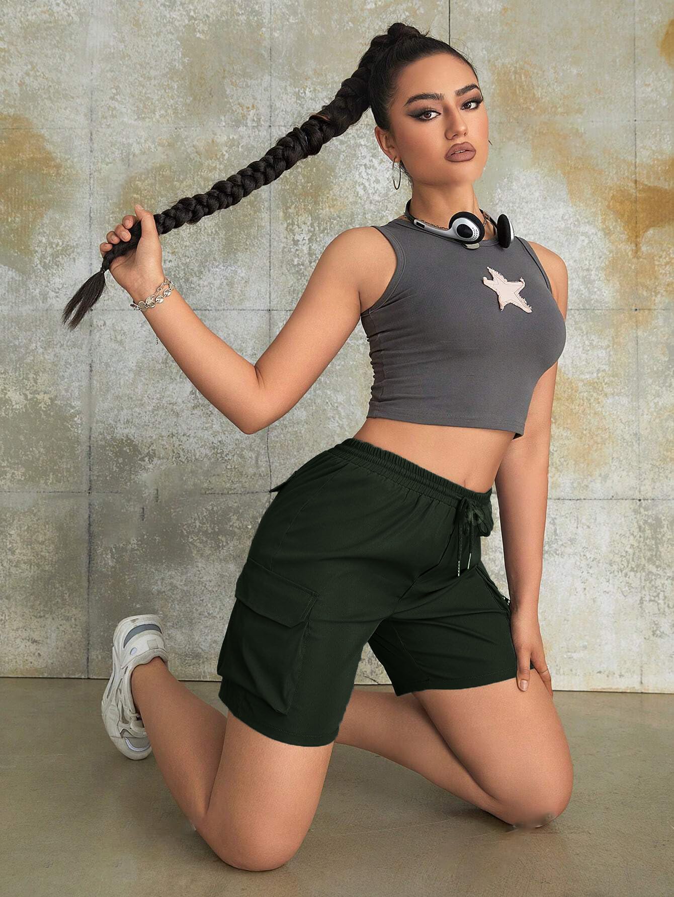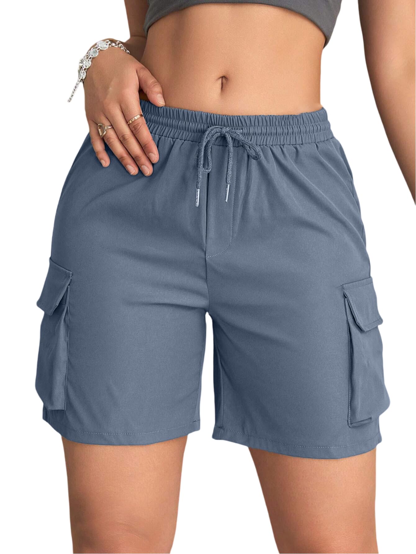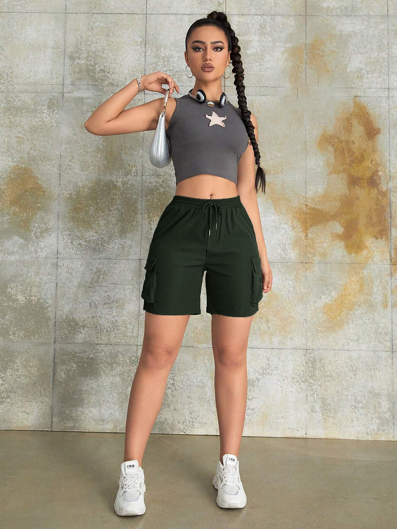 These stylish women's cargo shorts from SAKHWALA combine comfort and fashion effortlessly. Featuring a practical drawstring waist for a customised fit, these shorts are perfect for various occasions. The classic colours and cargo-style pockets add both functionality and aesthetic appeal. The relaxed fit design ensures unrestricted movement, making them ideal for travelling, outdoor activities, or casual outings. The shorts showcase utility pockets on both sides, perfect for carrying small essentials. The lightweight fabric offers comfort throughout the day, while the elastic waistband with drawstring provides secure and adjustable wear. These versatile shorts can be paired with crop tops, t-shirts, or casual tops for a trendy look. Whether you're heading for a casual day out or planning outdoor adventures, these shorts are a wardrobe essential that combines style with practicality.