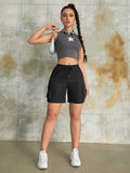 - ✔ Versatile Styling – The solid black color makes these shorts easy to pair with crop tops, tank tops, t-shirts, or hoodies. Dress them up with sneakers for a sporty vibe or sandals for a relaxed vacation look.