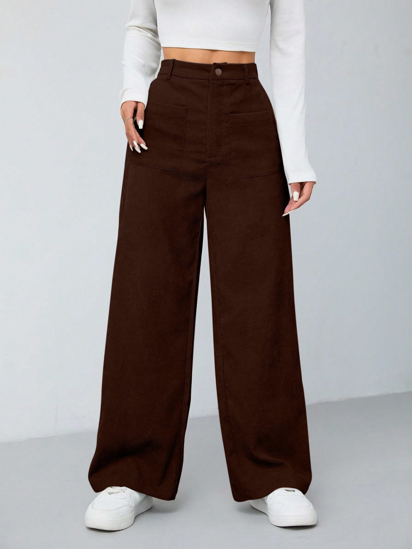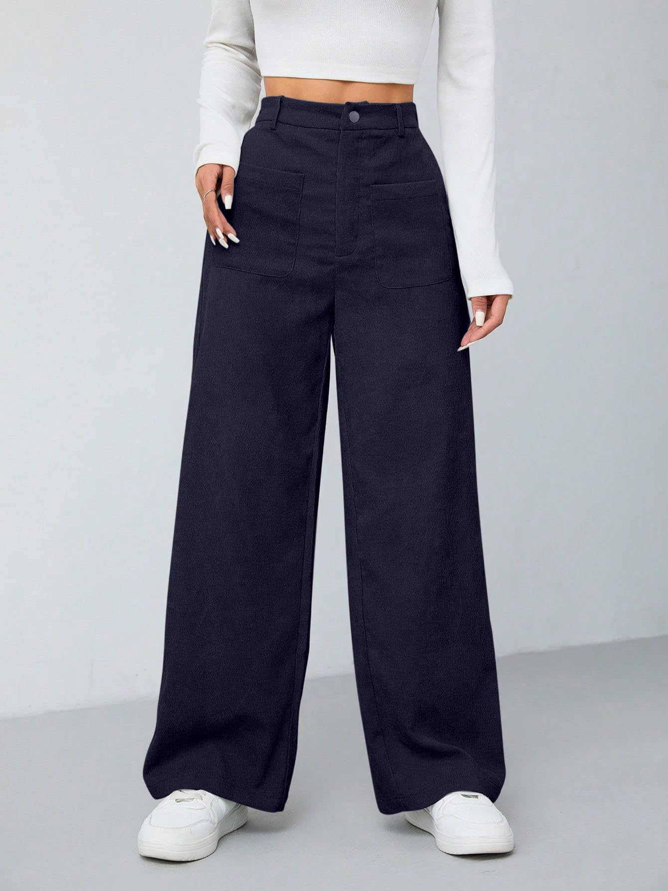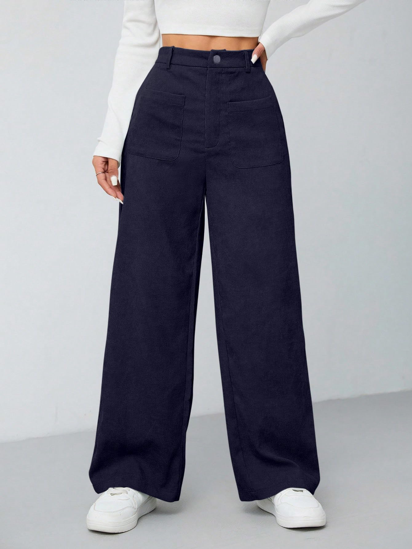 Women's Wide Leg Trousers Pants with Front Patch Pockets
