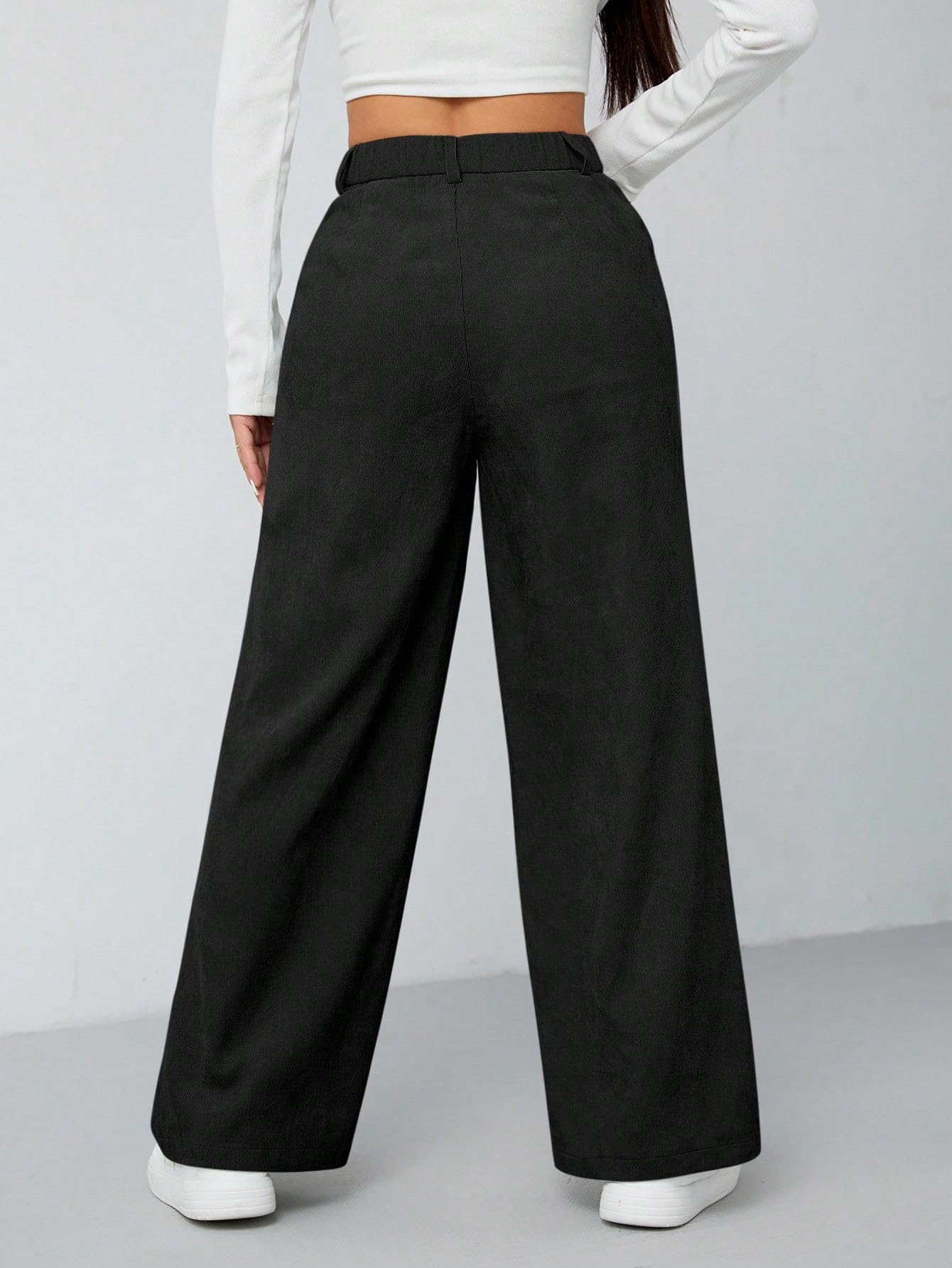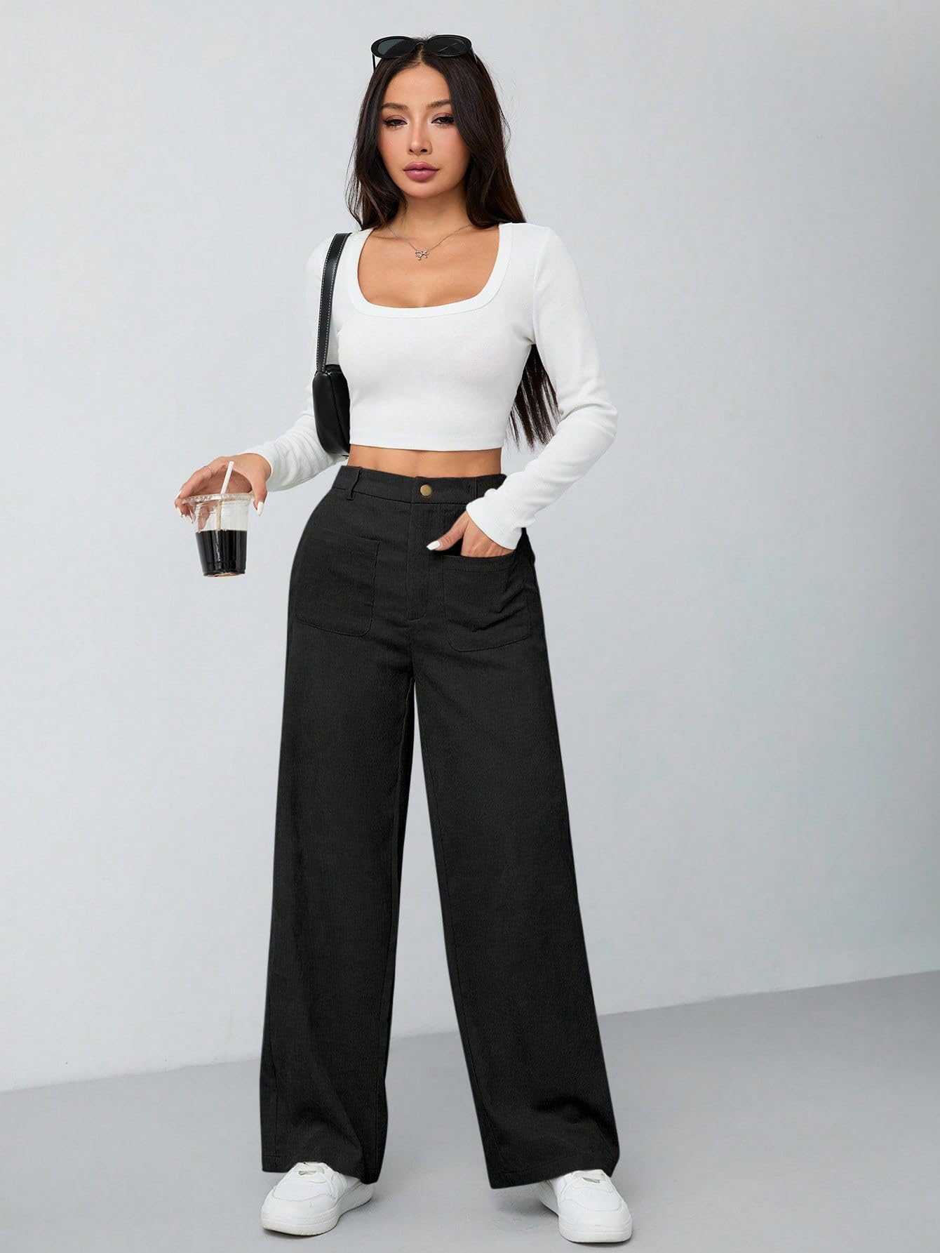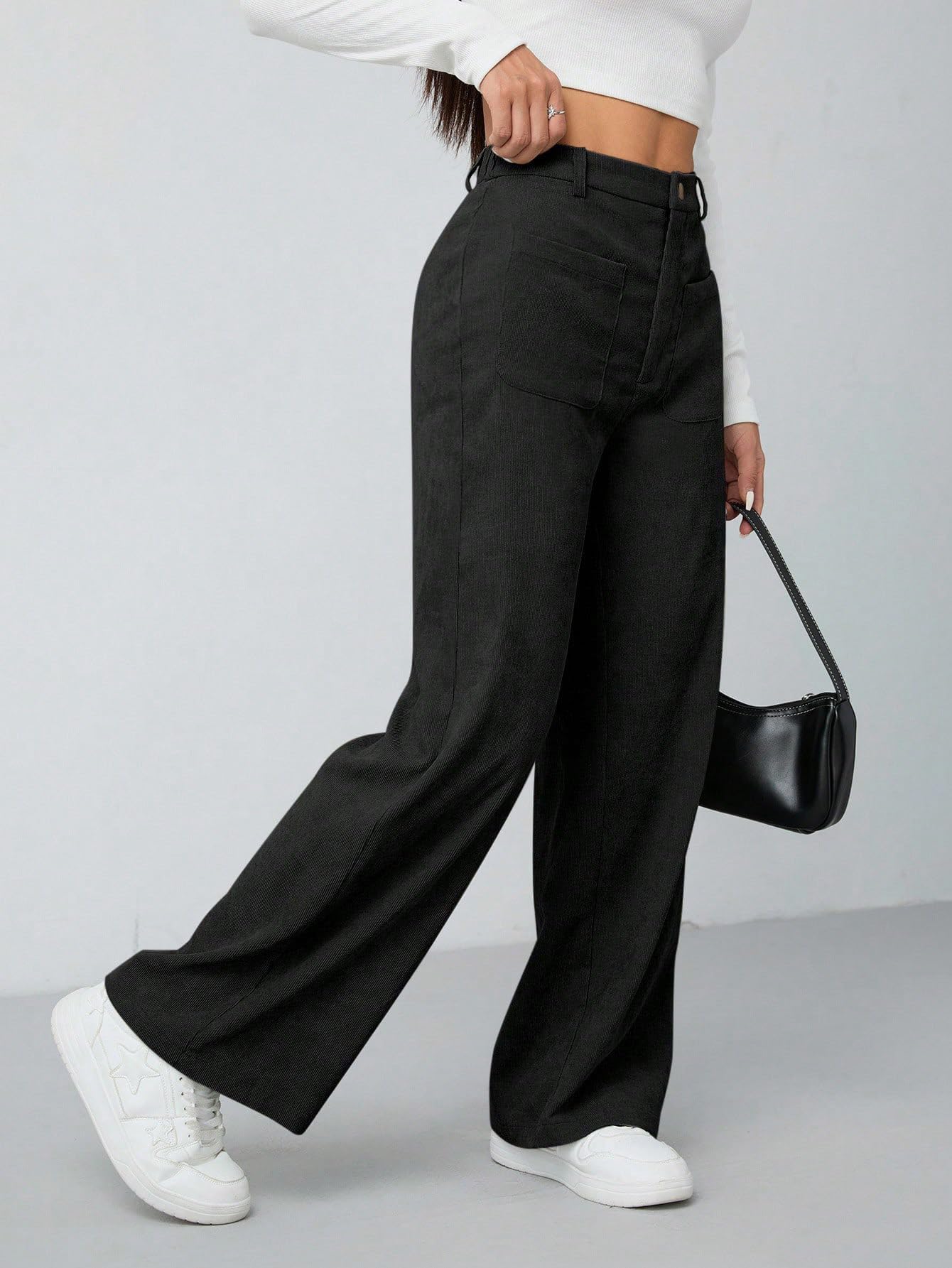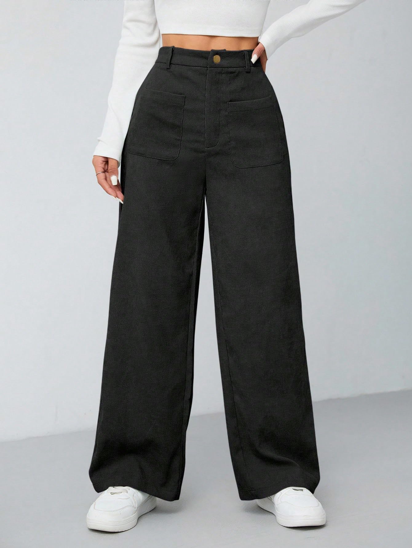 Women's Wide Leg Trousers Pants with Front Patch Pockets